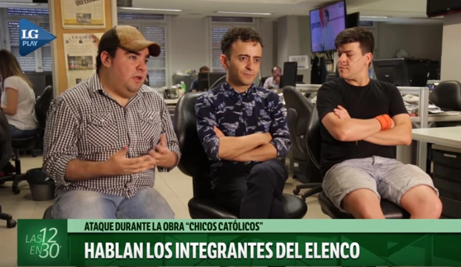 Los actores Enrique "Kikín" Díaz, Guido Guerrero y Gabriel Carreras fueron entrevistados por los periodistas del programa "Las 12 en 30'" y contaron cómo vivieron el hecho de agresión que sufrieron el sábado por la noche, durante a función de "Chicos Católicos".