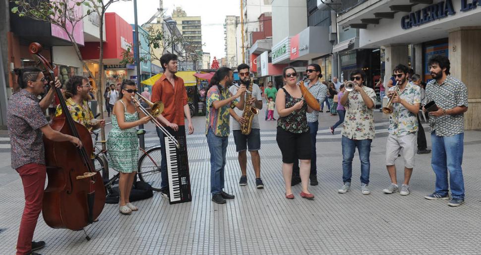 DE LA PLAZOLETA A LA PEATONAL. El sonido brillante de los vientos y el ritmo envolvente de la cumbia calentaron la tarde del viernes en LA GACETA. LA GACETA / FOTO DE HÉCTOR PERALTA.-