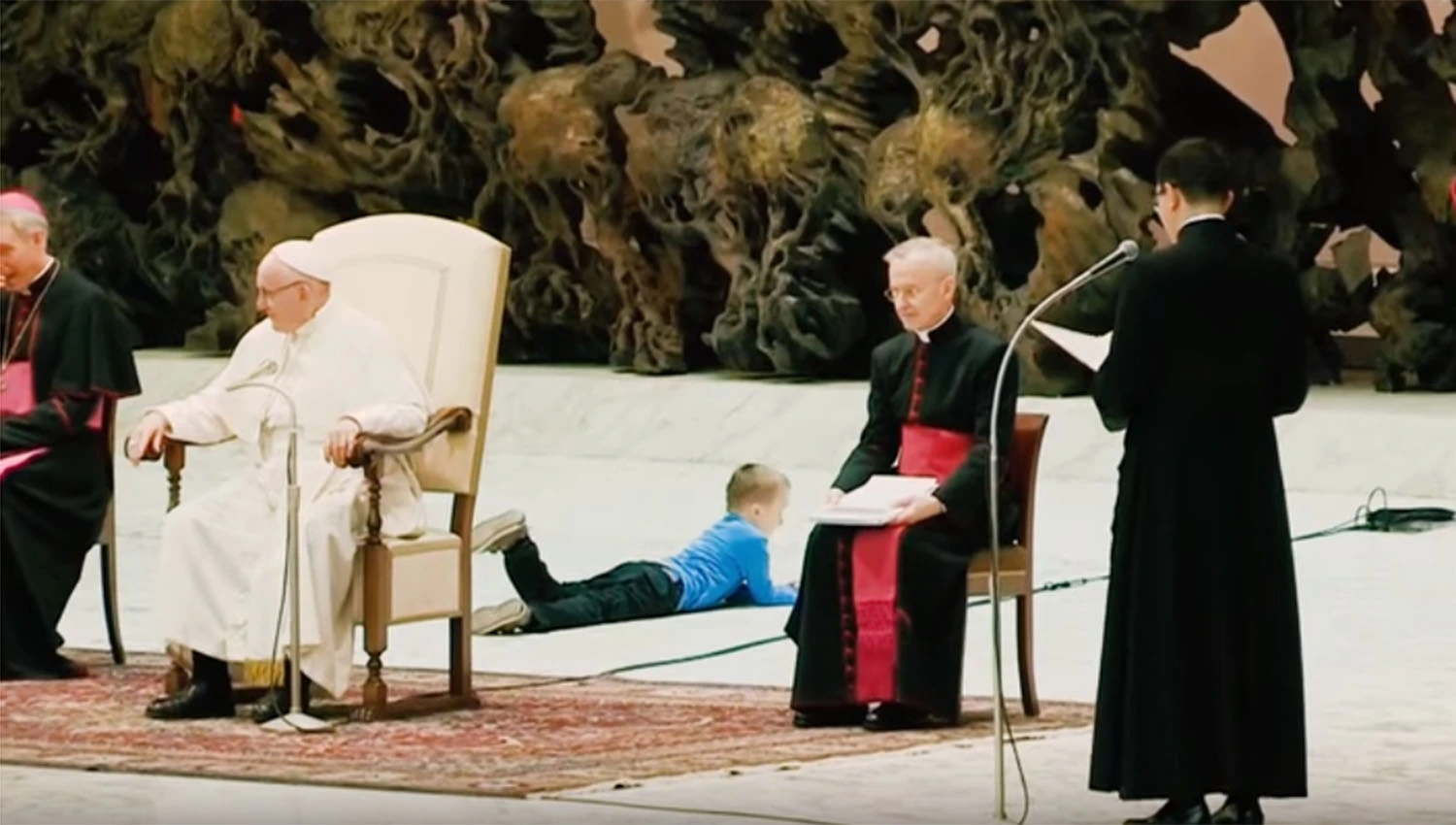 Video: un niño argentino "indisciplinado" jugó junto al papa Francisco durante una audiencia