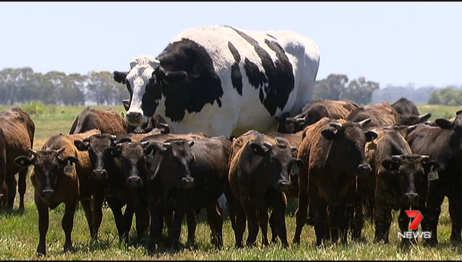 Entre tantas vacas, destaca ella, Knickers, incapaz de camuflarse con sus casi dos metros de altura (194 centímetros) y 1.400 kilos de peso. Pese a que ostenta el título de la vaca de raza Holstein más grande de Australia y su nombre significa "bragas" (bombacha, en Argentina), se trata en realidad de un buey, un macho castrado para carne. Sus colosales dimensiones, sin embargo, determinaron que tendrá otro destino.