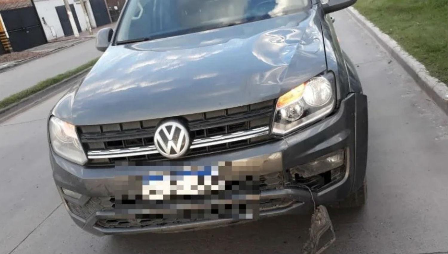 ASI QUEDO. La camioneta que impactó a la víctima fatal muestra en su parte frontal las marcas que dejó el percance.