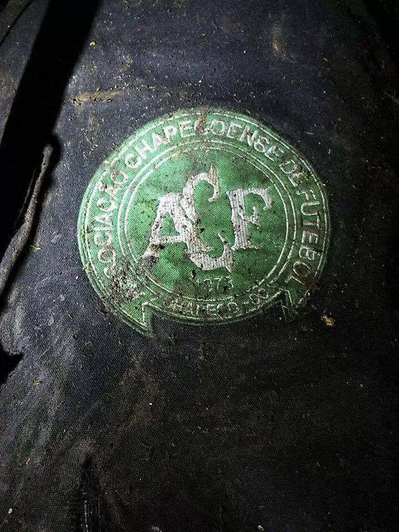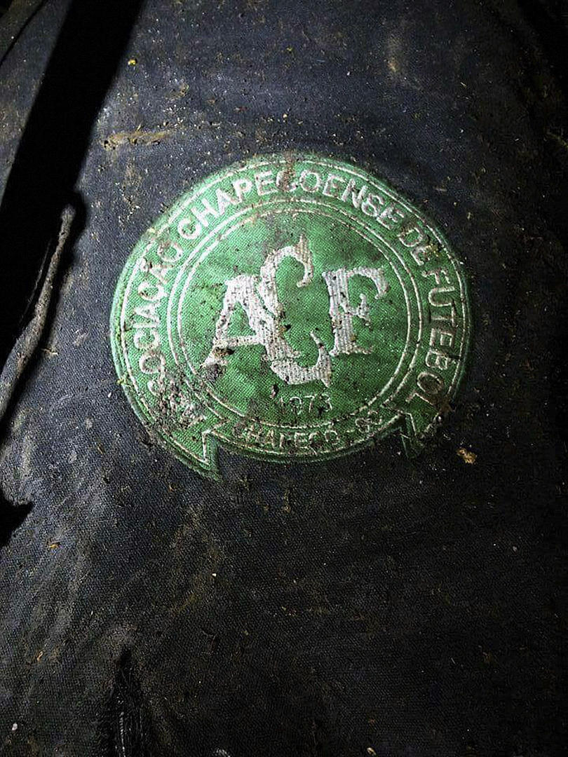 UN MAL RECUERDO. El escudo de Chapecoense luce sobre el resto de una prensa luego del accidente aéreo. reuters