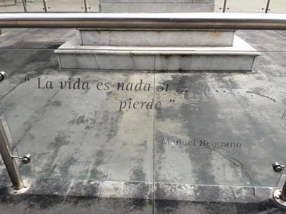 Los murales transparentes y los carteles indicadores colocados alrededor del Monumento a Manuel Belgrano están deteriorados