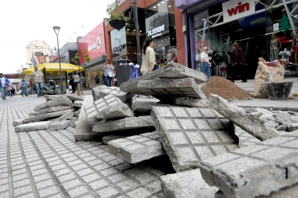 ARREGLOS. Así lucía ayer un tramo de la peatonal Mendoza al 600. LA GACETA / FOTO DE FRANCO VERA.-