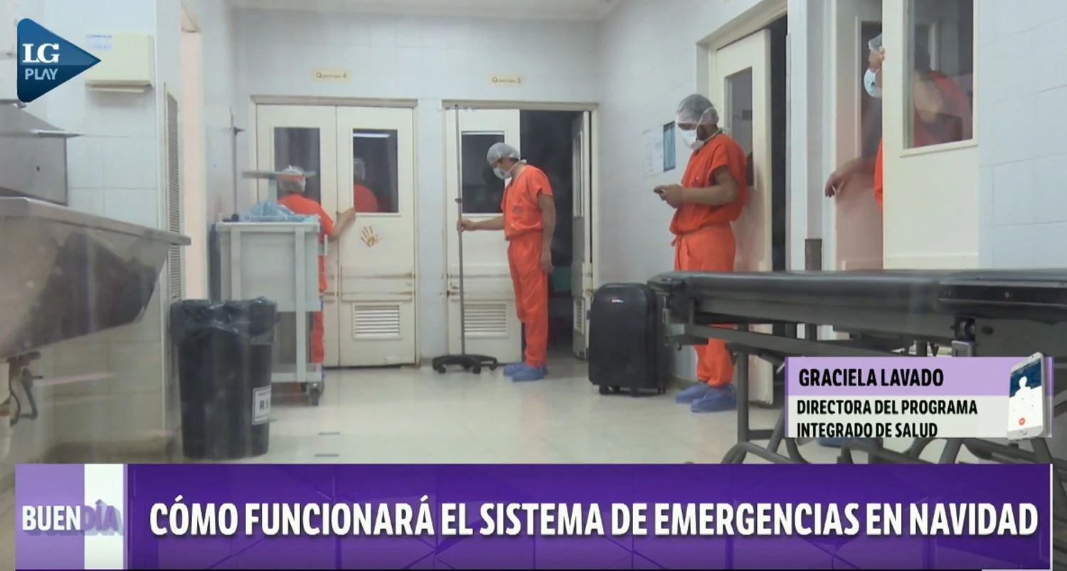 Durante la Nochebuena se multiplican las emergencias médicas. En una entrevista concedida a "Buen Día", el noticiero matutino de LG Play, Graciela Lavado, directora General del Programa Integrado de Salud, brindó detalles sobre el funcionamiento de los hospitales y guardias previstas para hoy.