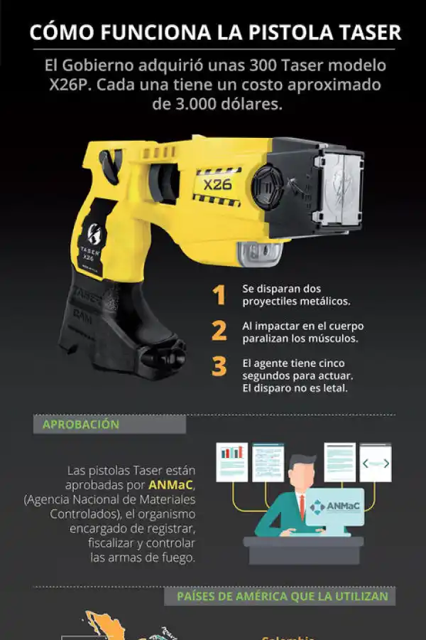 Bullrich informó que por ahora los oficiales que utilicen las Taser no llevarán armas letales. “En general, en todos los países se usan las dos pistolas. Cuando haya una experiencia de un tiempo determinado y se vea la jurisprudencia que se va generando, comenzaremos a trabajar la posibilidad de que en algunos lugares se utilicen las dos armas”, detalló.