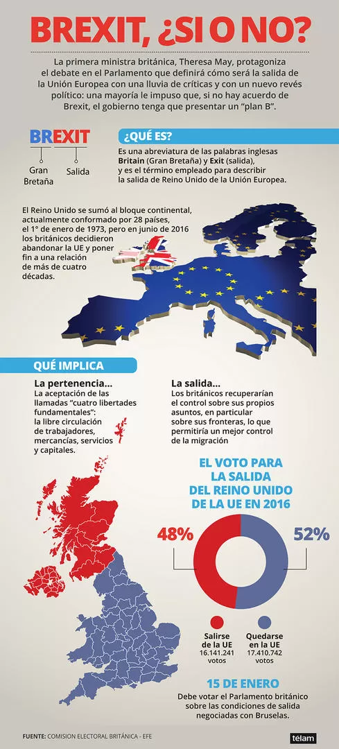 1- El martes 15 de enero el Parlamento de Gran Bretaña votará el tratado de retirada que la primera ministra Theresa May negoció con la Unión Europea. May está en minoría en el Poder Legislativo, acorralada por la oposición y los conservadores díscolos. Una derrota parlamentaria impediría que se produzca el Brexit.