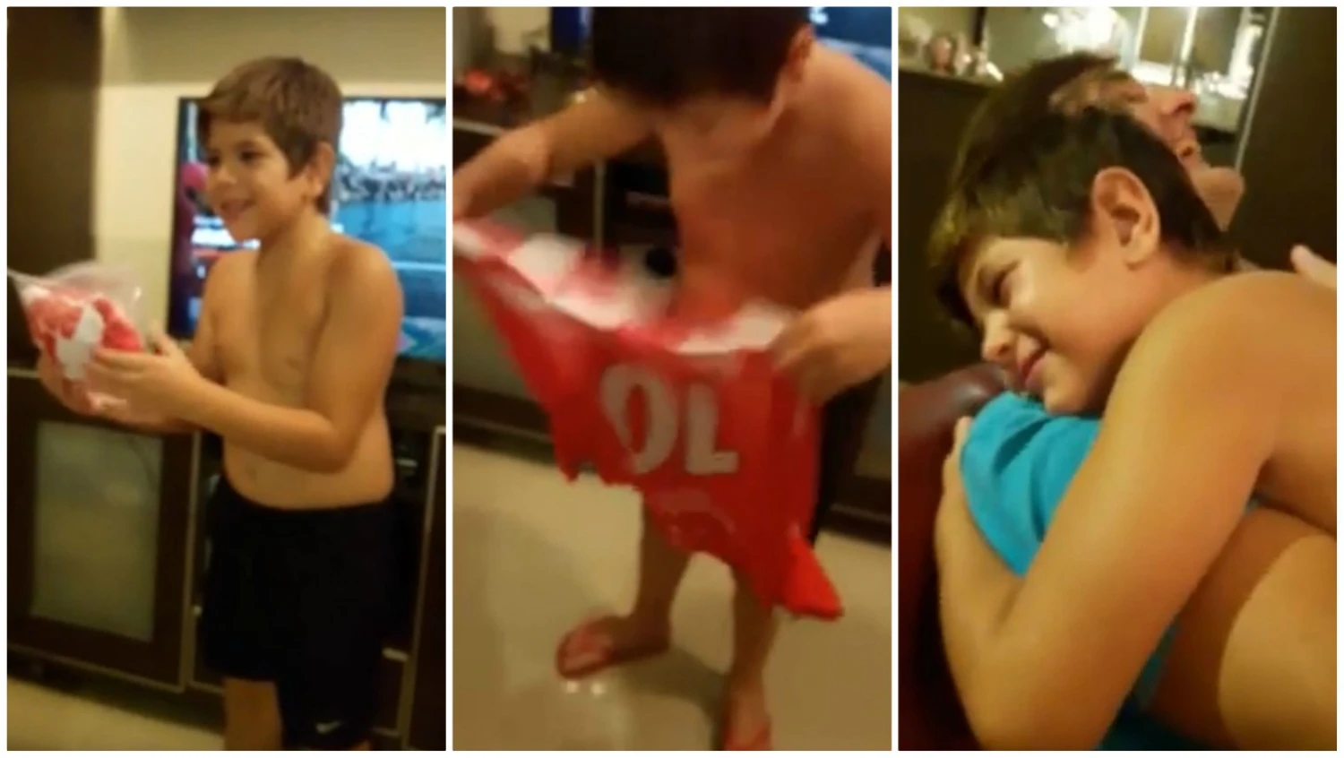 Cuando vio su regalo, "Bauti", no lo podía creer. El niño no se preocupó por disimular su cara de emoción y eso que aún no había notado que estaba firmada.