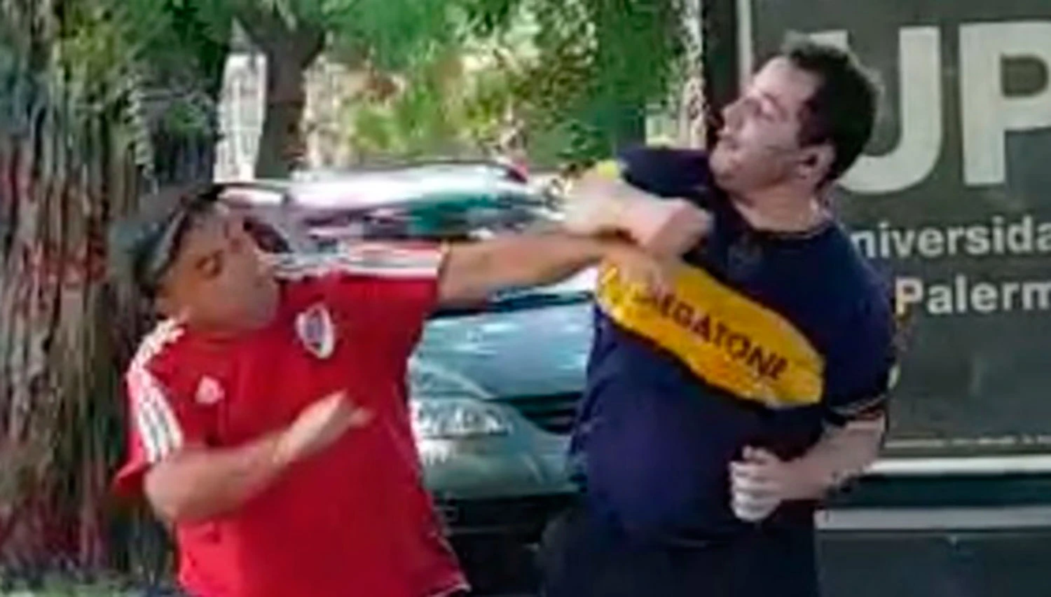 En el video que se viralizó por las redes sociales se puede ver que el hombre con la camiseta "Xeneize" corría por la avenida Figueroa Alcorta y al percibir que otro con la camiseta de River se le acercaba a los gritos de "tomátela de acá, boludo", intentó explicar que no quería conflictos sino simplemente seguir su entrenamiento.