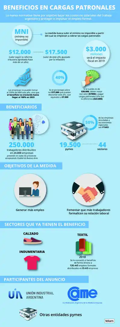 El informe que publicó el Gobierno nacional advierte que las economías regionales ligadas al cultivo y la producción de alimentos se encuentran en crisis. Frente a esta situación, Macri explicó que la nueva exención de cargas patronales es “el primer paso de una nueva agenda productiva en la que vamos a trabajar todo este año”. En este sentido, el jefe de Estado remarcó que la disposición “es producto centralmente del diálogo que tenemos con las cámaras que representan a las industrias y productores de todo el país”.