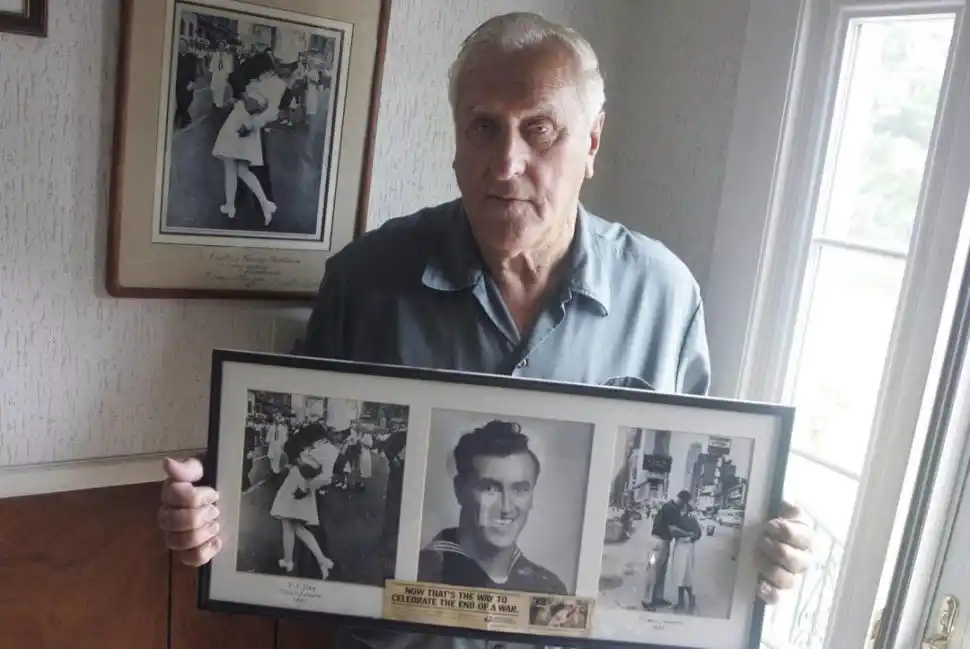 Ese 14 de agosto estaba de permiso en Nueva York, en el cine. Al enterarse de la noticia, salió a la calle a celebrar con la multitud. En ese ambiente de jolgorio besó a una desconocida y siguió su camino. Muchos años después dijo que ella le había recordado a las enfermeras que vio en un barco hospital.