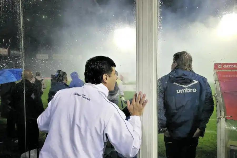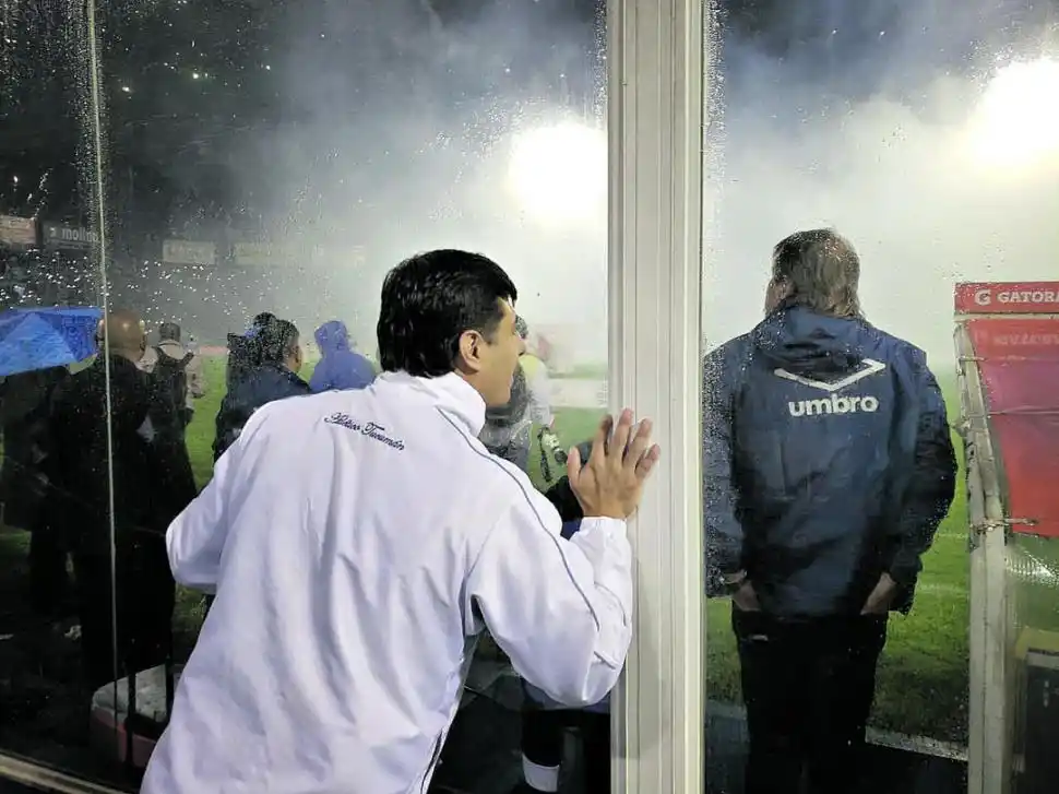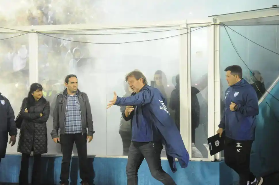 Ante la emotiva recibida que la hinchada “decana” le dio equipo, entre humo celeste y blanco y cohetes, Ricardo Zielinski se paró a un costado del banco a contemplar el show. Miraba en silencio, con los ojos bien abiertos a sus costados, a las tribunas, al cielo lluvioso. Mientras todo el estadio cantaba “Dale deca”, un hincha se acercó al banco de suplentes. Parado detrás del vidrio que separa la platea de ese sector del campo de juego (ver foto), el hombre le pidió al “Ruso” que siga siendo el “DT” de Atlético. “No te vayas, Ruso”, comenzó a implorarle a los gritos. “Vos sos de acá, ‘Ruso’”, continuó, exigiendo su garganta para que el técnico lo escuche. El fanático, vestido de campera blanca deportiva y jean azul, le gritó al técnico durante casi cinco minutos, pero no logró captar su atención. “Acá te queremos ‘Ruso’”, finalizó, y segundos antes de que comience el partido se fue a sentar a su butaca. El contrato del DT tiene fecha de vencimiento: 30 de junio. Todavía no se sabe si continuará.
