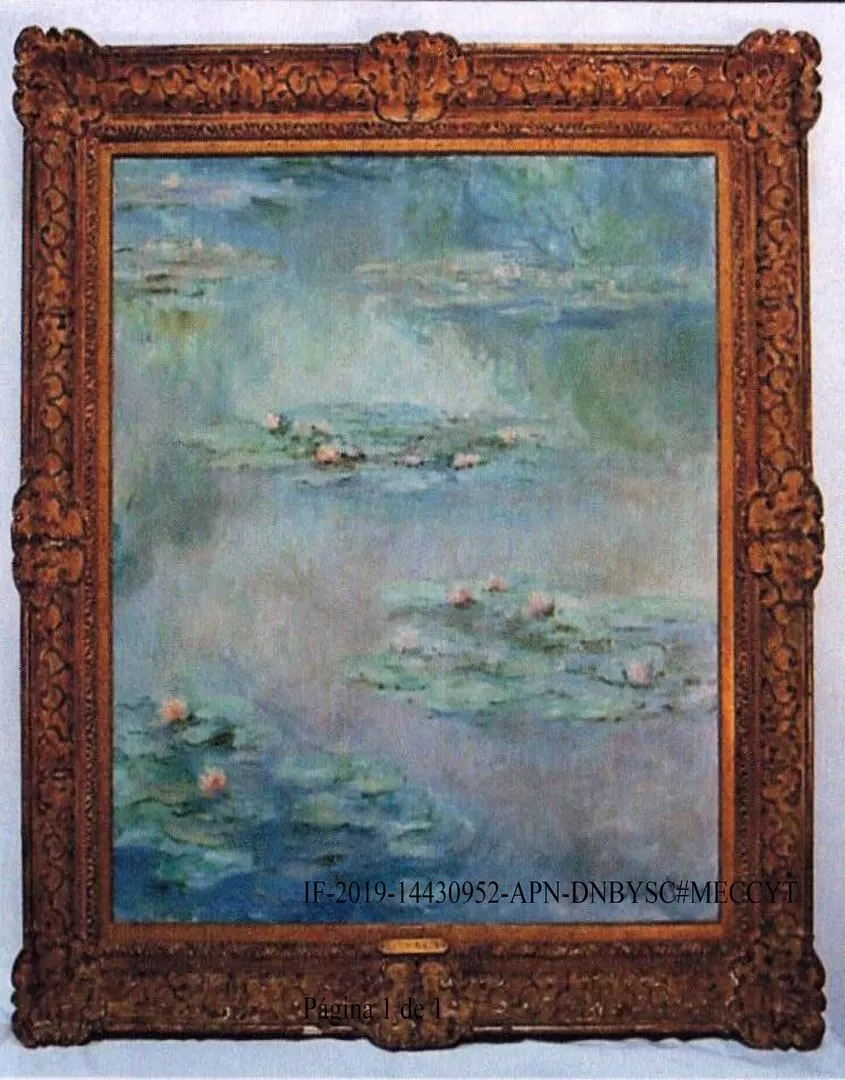Pero lo que se oferta a través del Boletín Oficial son dos pinturas de la serie de Ninfeas. La más antigua, y más cara, mide 90 centímetros de largo por 90 de ancho y data de 1904. El martes pasado se anunció en el Boletín Oficial la salida a subasta de esa obra, “cuyo estado de conservación es bueno”, y con un precio base de 50 millones de dólares.