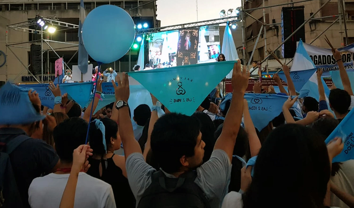 Mientras esperaban que todos los presentes se logren acomodar, los coordinadores -arriba del escenario- pidieron un minuto de silencio por Faustina y todos aquellos bebés que fueron abortados.