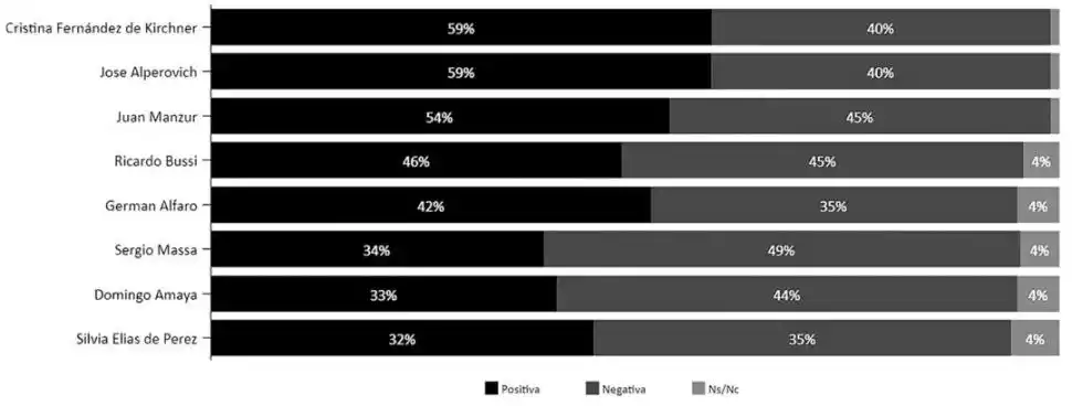Respecto de la imagen de los dirigentes, Isonomía mezcló referentes locales con nacionales. Una de las particularidades de la encuesta es que Alperovich tiene la misma imagen positiva -y también negativa- que la que los consultados tienen de la ex presidenta Cristina Fernández.