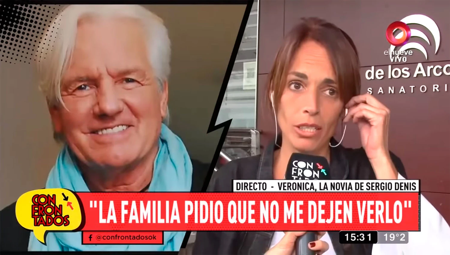 Verónica Monti, la novia de Sergio Denis, intentó visitarlo en el sanatorio Los Arcos, donde el cantante se encuentra internado, y se dio con que pesa una orden judicial que le impide la visita, según contó ella misma en el programa "Confrontados"