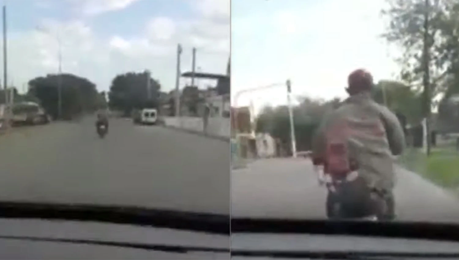 "¡Ladrón, ladrón¡ ¡Llamen a la Policía!", grita la mujer en la persecución que se extendió hasta las inmediaciones del barrio Rincón del Este. El motociclista hace oído sordo y continúa su marcha sin detenerse, pese a tener el auto de la denunciante a pocos centímetros de su rodado.
