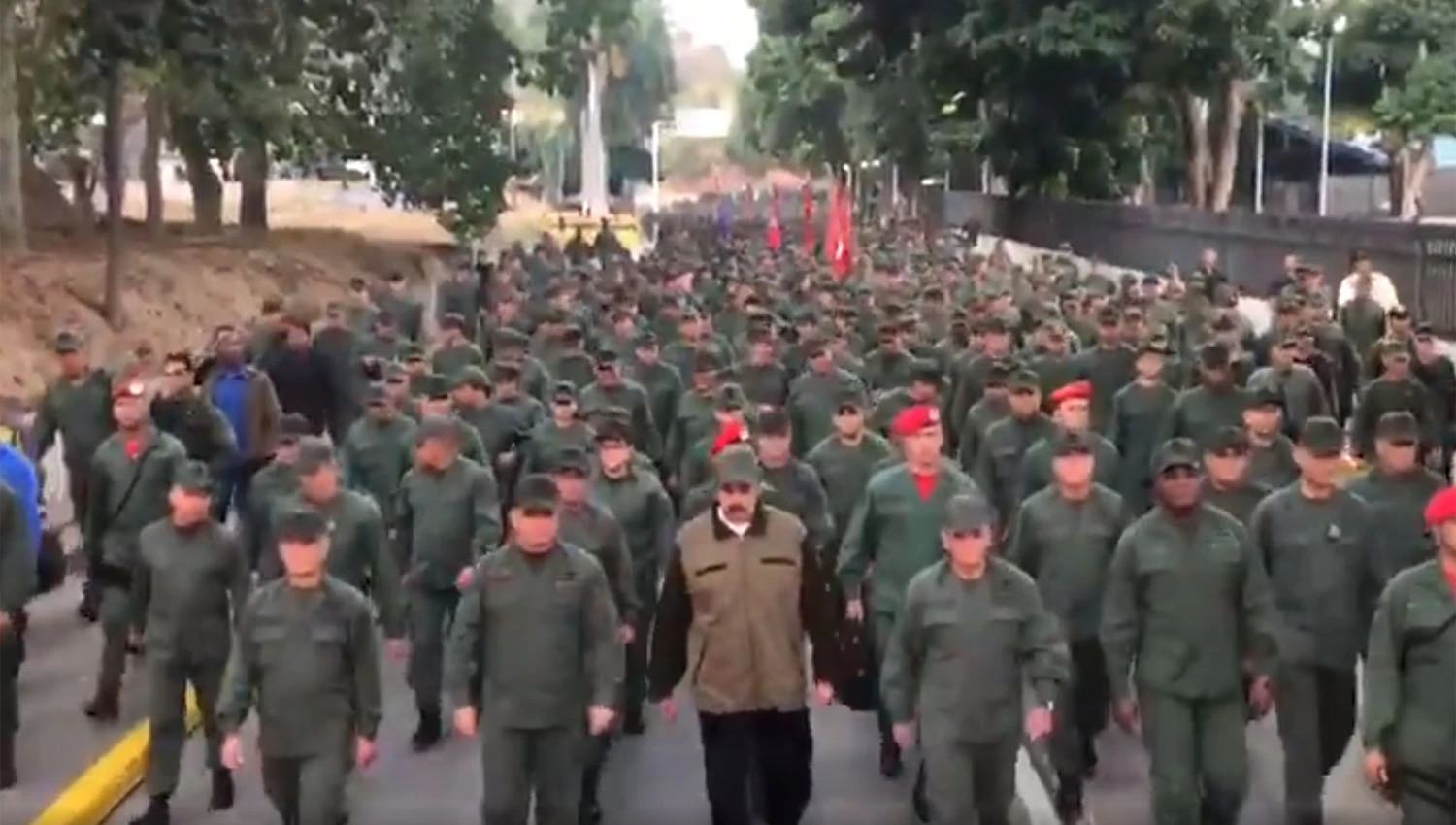 "Ha llegado la hora de combatir y dar el ejemplo al mundo y decir que en Venezuela hay una FAN (Fuerza Armada Nacional) consecuente, leal y cohesionada, derrotando intentonas golpistas de traidores que se venden a Washington", señaló el mandatario, quien le pidió a los oficiales "desarmar a cualquier traidor y golpista".