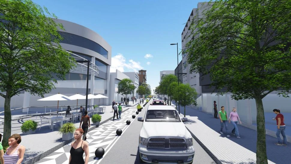 La nueva semipeatonal será diferente a sus antecesoras de Buenos Aires primera cuadra y de Mendoza al 800. El ensanche de 2,5 metros estará definido físicamente por pintura pavimental, maceteros y una hilera de pilones de hormigón armado ubicados a lo largo de toda la intervención. Fuentes municipales aclararon que se harán dársenas para que los taxis, autos particulares y camiones puedan bajar pasajeros o mercadería, respectivamente. Las paradas de taxis que estaban en esa calle desaparecerán, ya que -aseguraron fuentes oficiales- no estaban autorizadas.