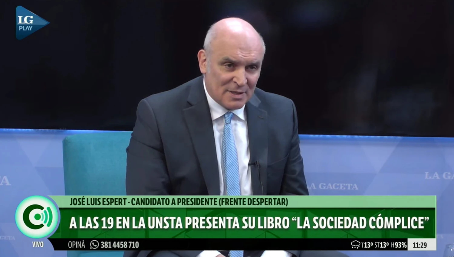 El economista José Luis Espert candidato presidencial por el Frente Despertar, aseguró que todos los argentinos "somos responsables de la decadencia del país" y realizó fuertes comparaciones con países vecinos.