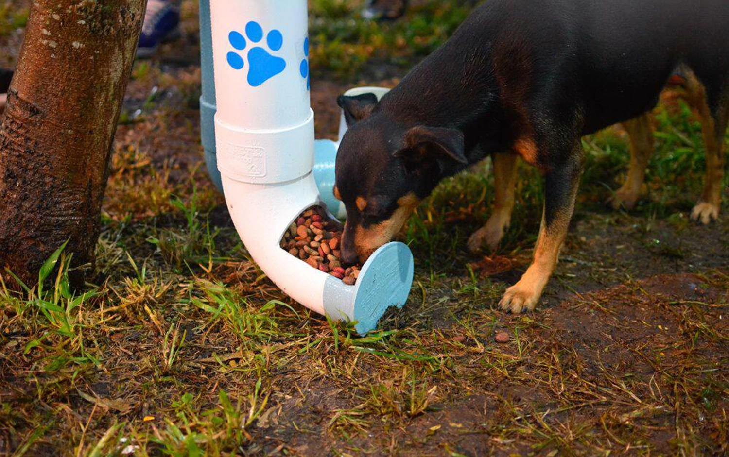 Instalan "paradas animales" para alimentar a los perros callejeros