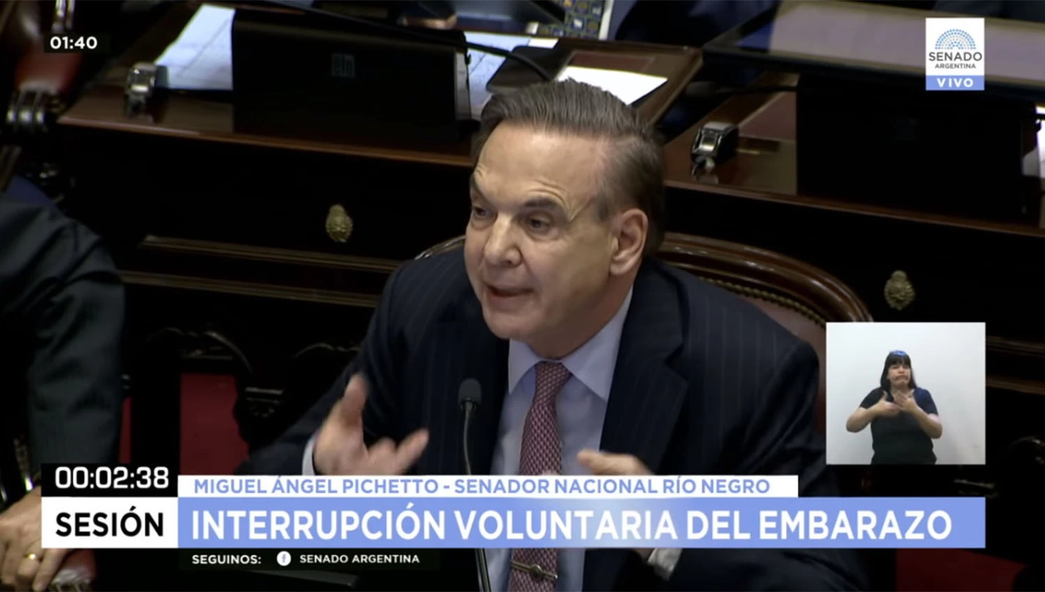 El 9 de agosto de 2018, el Senado rechazó la media sanción faltante para promulgar la ley. Pichetto, jefe del interbloque Argentina Federal, expuso en aquella oportunidad ante sus pares durante casi 30 minutos y expresó su postura a favor del aborto. "Estoy convencido de que la Argentina, cuando podamos votar este tema, va a entrar definitivamente en la modernidad. Va a entrar en un proceso de justicia, de equidad, un poco más de lo que hoy todavía se vive", remarcó ante sus pares, recuerda Infobae.