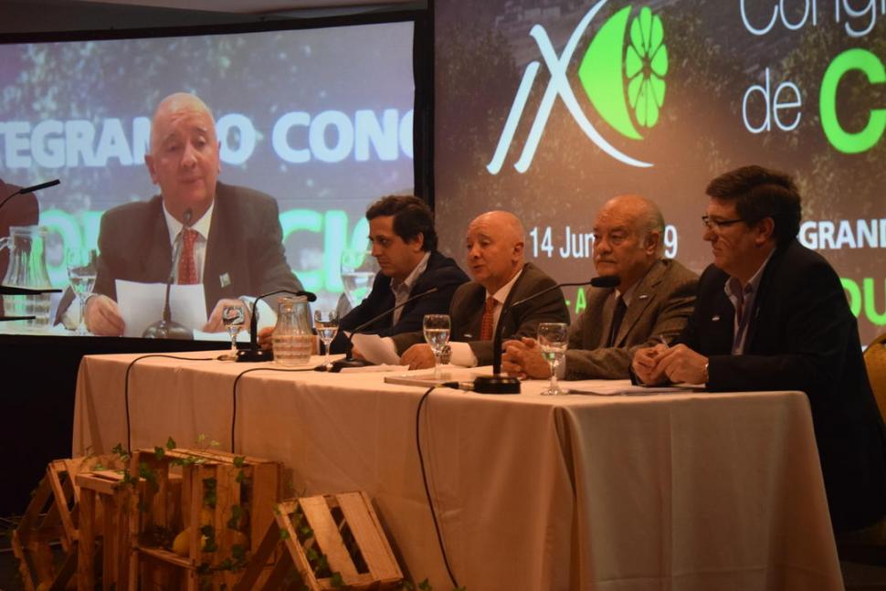 APERTURA. Hernán Salas abrió el Congreso, acompañado por el ministro Juan Luis Fernández, y por funcionarios del Senasa y del sector citrícola.