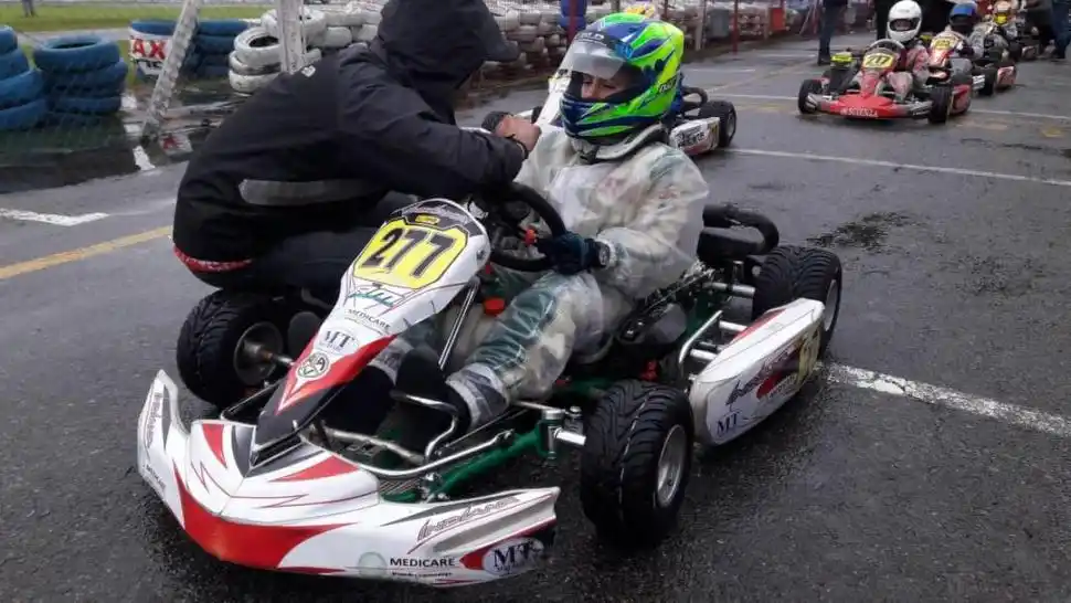 La jornada en el kartódromo de Buenos Aires tuvo como protagonista a la lluvia. Contra ese factor climático tuvieron que luchar los hermanos Daz, Lorenzo (foto) y Bautista. Los tucumanos compiten en la quinta fecha de la Rotax Bonaerense que para hoy, tampoco tiene un pronóstico favorable en cuanto al clima se refiere.