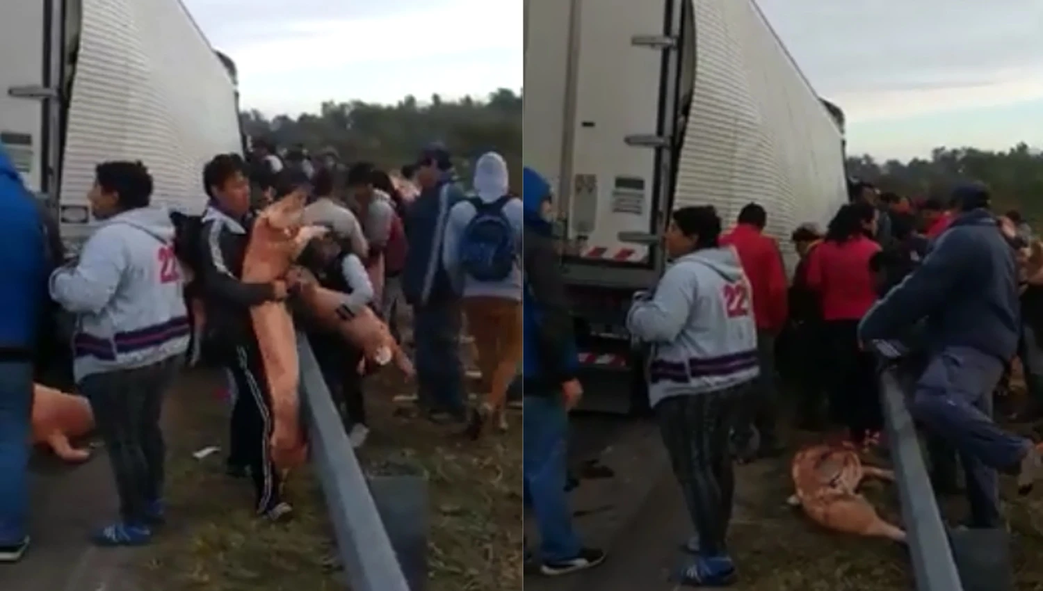 Un camión perdió su carga de cerdos faenados: los vecinos se llevaron todo
