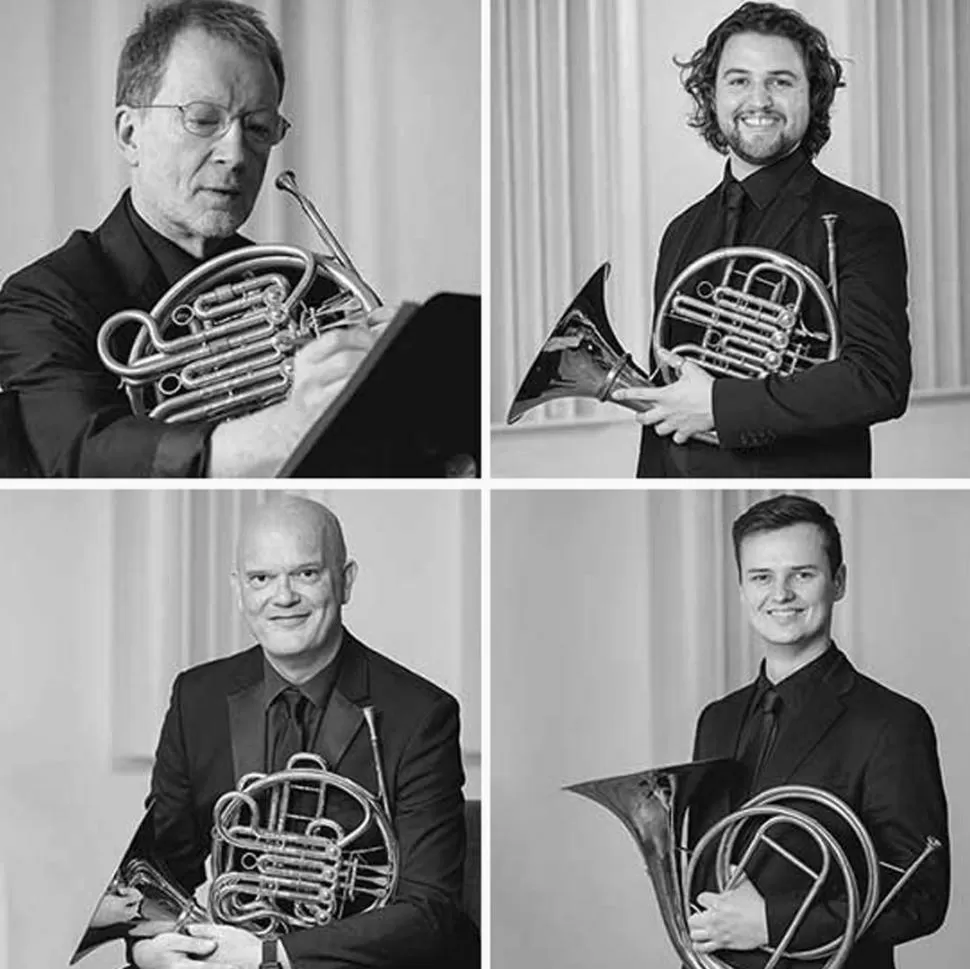 Los solistas son los británicos Pip Eastop, Hugh Sisley, Alex Wide y Martin Childs, e integran The Guild of Hornplayers Quartet.