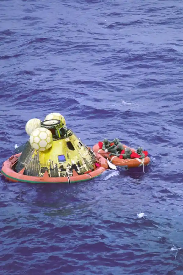 7.- El Columbia amarizó el 24 de julio, a las 18.50, en el Océano Pacífico, 1.500 kilómetros al sudoeste de Hawai. La tripulación fue recogida por el portaaviones Hornet. Habían transcurrido ocho días, tres horas, 18 minutos y 35 segundos desde el despegue en Cabo Cañaveral.