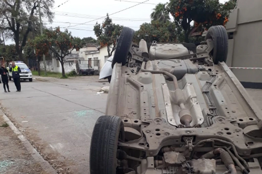 Al llegar a la esquina con España, y por razones que se desconocen, chocaron contra otro vehículo y el Chevrolet dio un vuelco, que lo dejó con las ruedas hacia arriba, en medio de la calle.