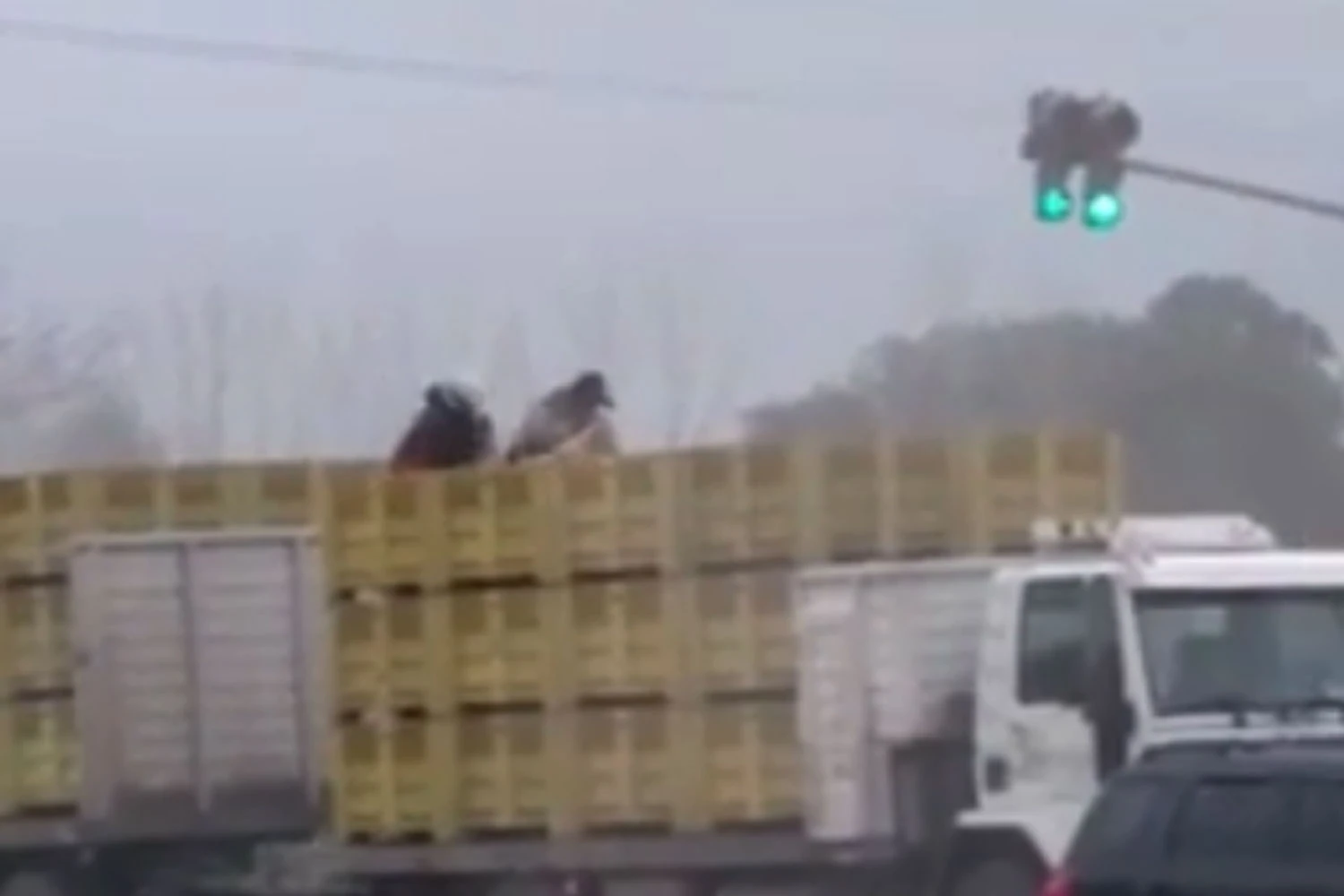 En la grabación se puede observar a dos hombres con bolsones robando limones de un camión que está parado en un semáforo.