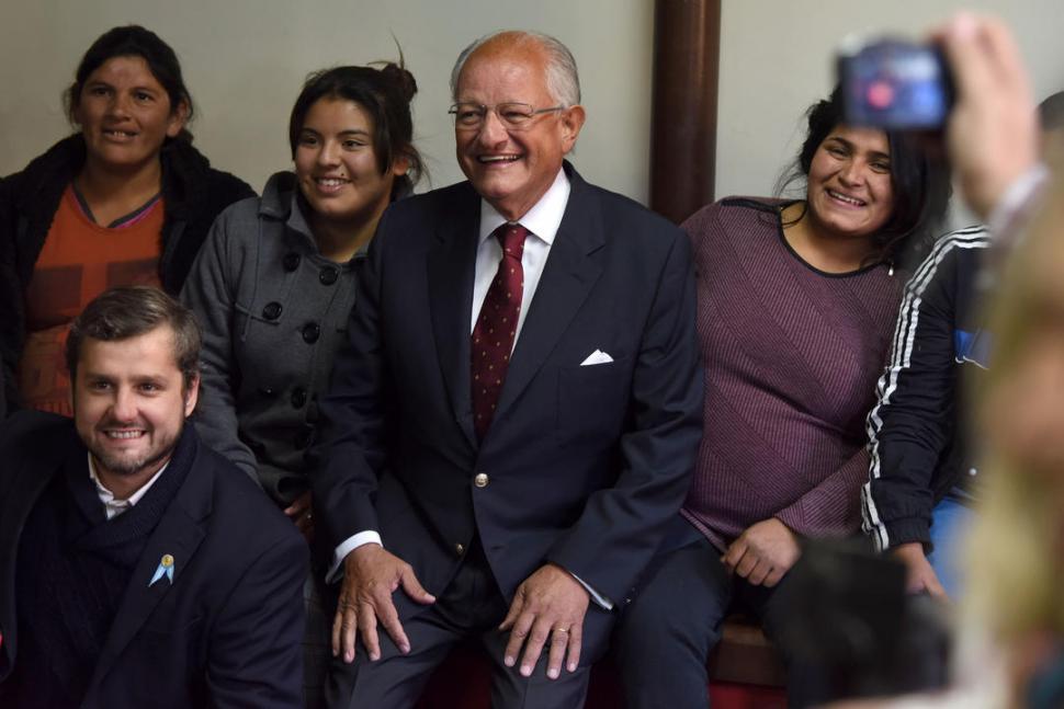 FESTEJO. El doctor Albino, el intendente Campero y las madres de Conin. LA GACETA / FOTO DE DIEGO ARÁOZ.-