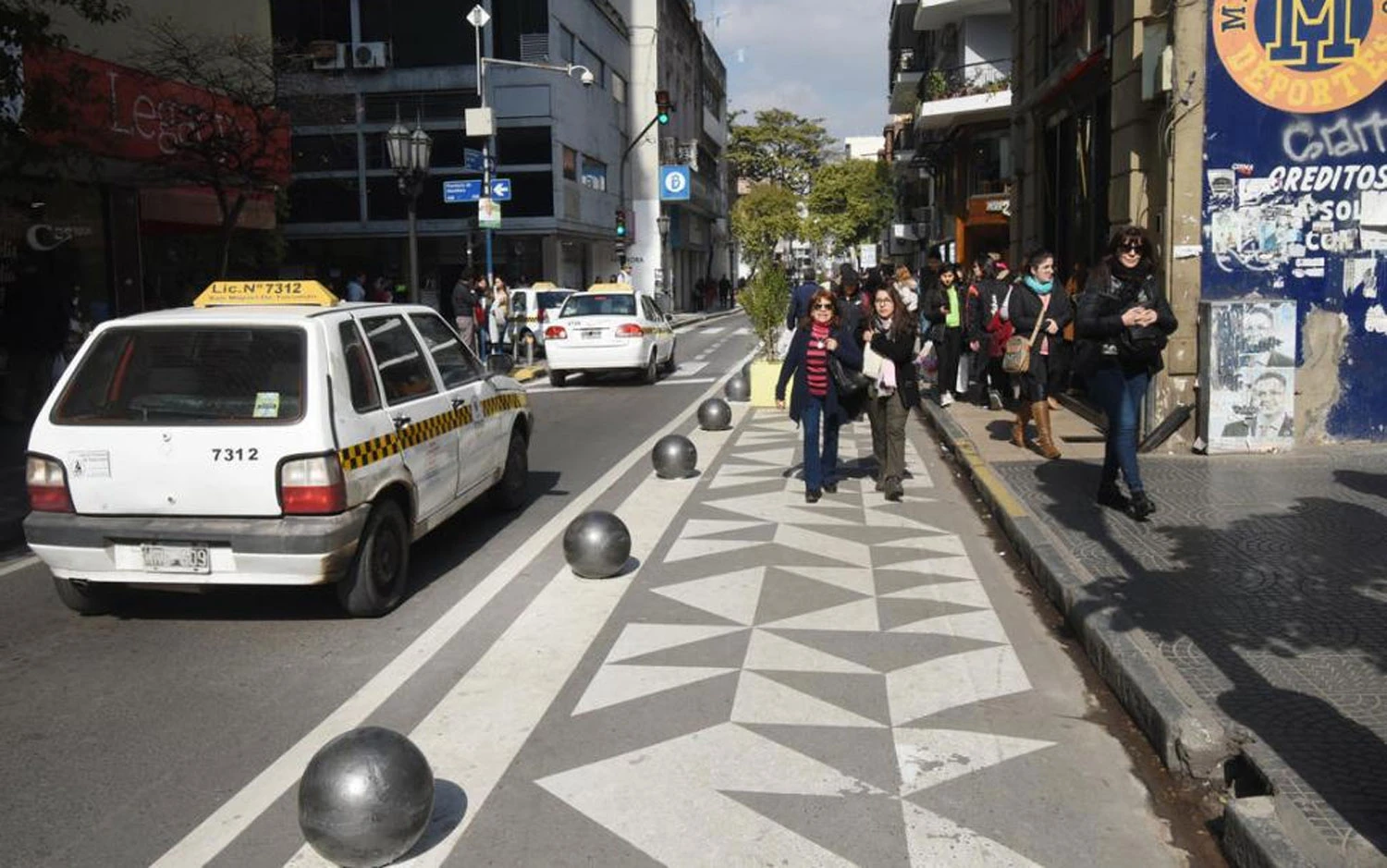 Los trabajos constan en el ensanchamiento de las veredas, delimitadas con pintura, macetas y pelotas de hormigón. Y comprenden desde la 25 de Mayo hasta la avenida Salta.
