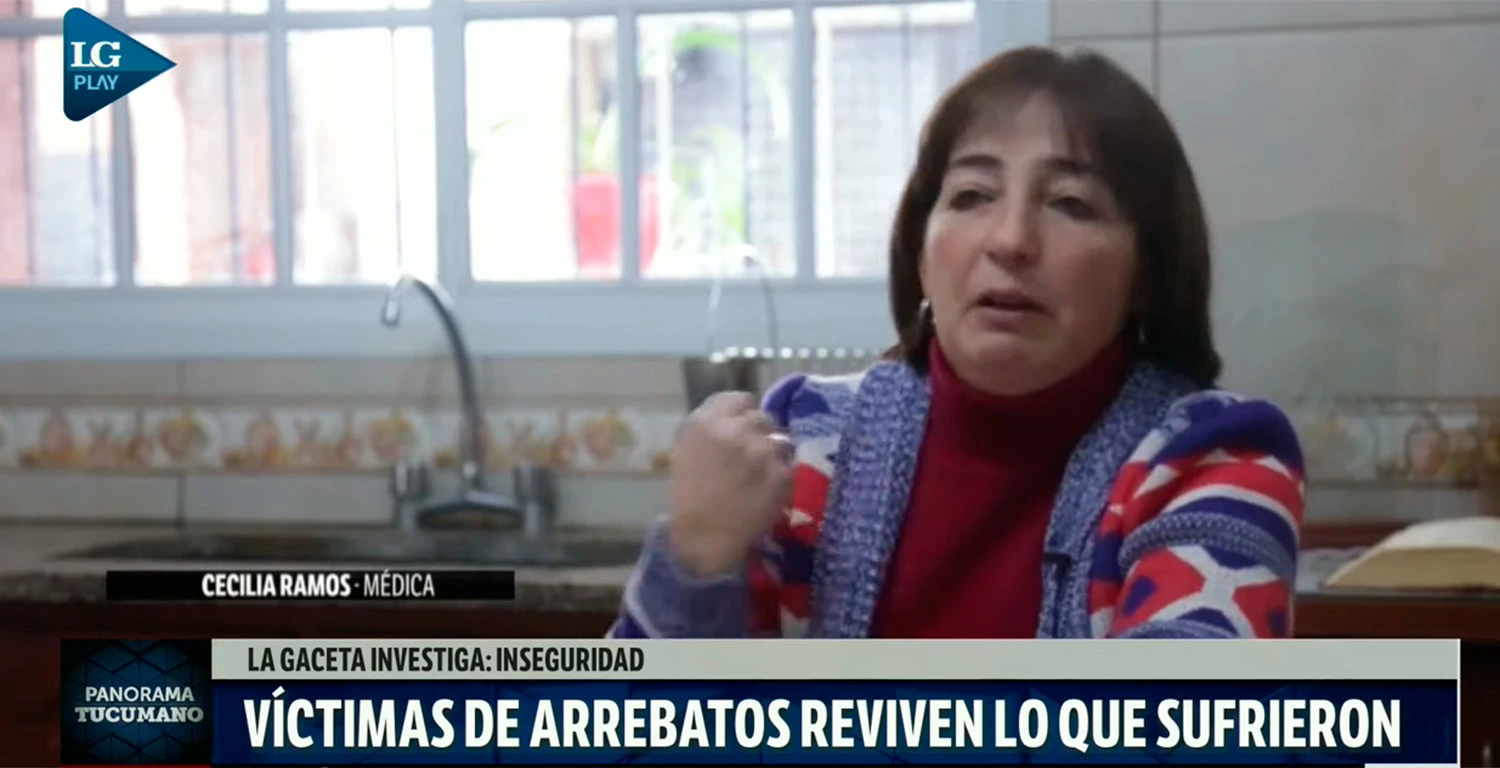 La profesional fue una de las víctimas de arrebatos que anoche expuso su testimonio en el programa Panorama Tucumano, que conducen Federico van Mameren y Carolina Servetto por las plataformas de LG Play y Canal 10. Ramos relató minuto a minuto lo vivido aquella mañana, cuando regresaba a su casa en Necochea al 1.000, luego de prestar servicios en La Ramada.