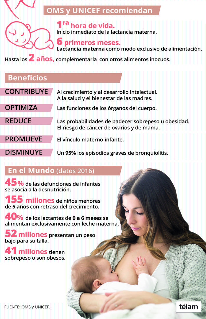 “También para las madres la lactancia es beneficiosa -destaca la obstetra Cecilia Ouset-: previene el cáncer de mama si se da de mamar más de dos años, ayuda a recuperar el peso saludable previo a la gestación, disminuye la incidencia de depresión posparto, crea un vínculo afectivo y aumenta la autoestima materna. ¡Y además es gratis y está siempre a la temperatura perfecta!”.