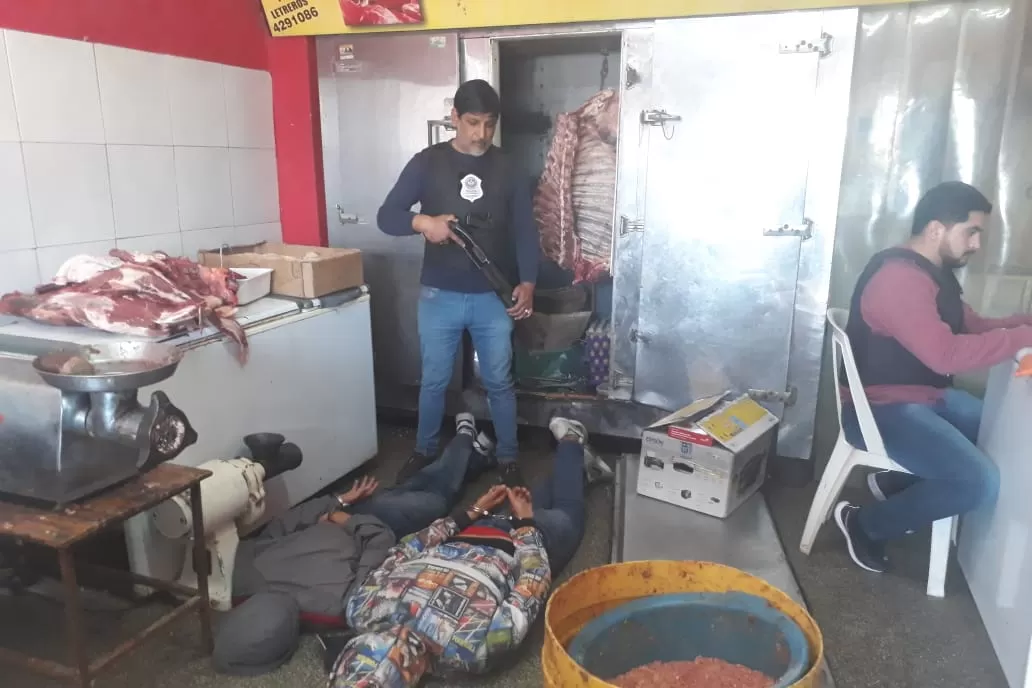 "Los conductores que esperaban afuera huyeron y los dos sujetos que ingresaron a la carnicería tomaron de rehenes a los tres empleados y se escudan detrás del mostrador, disparando con un arma de guerra, una pistola calibre 11.25. Los policías respondieron con disparos disuasivos para evitar un mal mayor, teniendo en cuenta que se trata de un lugar muy concurrido”, explicó el jefe de la División de Delitos contra la Propiedad de la Policía, Daniel Robles.