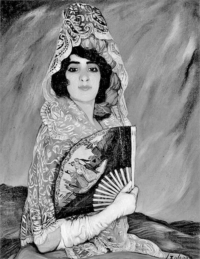 IMPONENTE ABANICO. Resalta en el óleo “Mi prima Cándida con mantilla”, que Ignacio Zuloaga ejecutó en 1913.