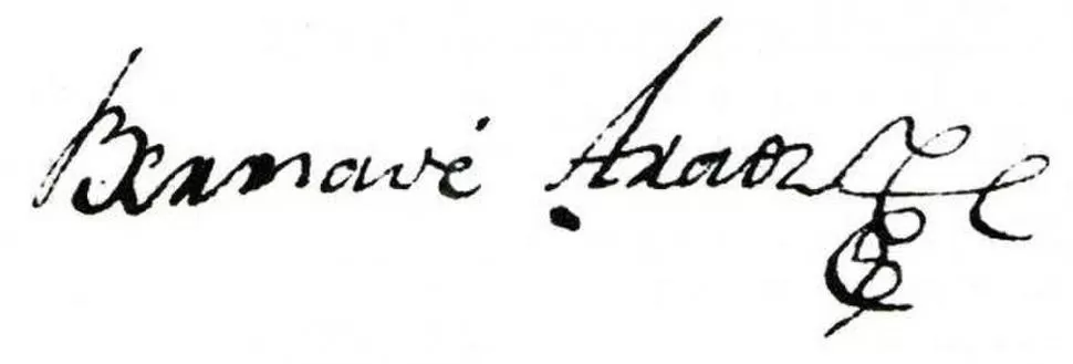 BERNABÉ ARÁOZ. Firma del gobernador de Tucumán, quien en 1821 combatiría contra Martín Güemes.