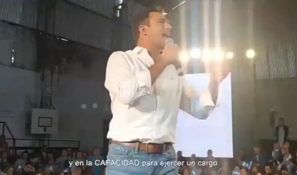 “El análisis que podemos hacer es casi nulo, ya que queda claro que él está leyendo un texto que está justo debajo de su celular. Eso se lo puede identificar si se agranda la imagen. Se van a ver las pupilas yendo de izquierda a derecha, por lo cual la gestualidad está muy contenida. Está actuando, hace una lectura cerrada, no tiene tono discursivo tampoco. Diríamos que el spot donde él está con la Casa de Tucumán de fondo es una pequeña actuación donde él lee. No hay emociones comprometidas”.