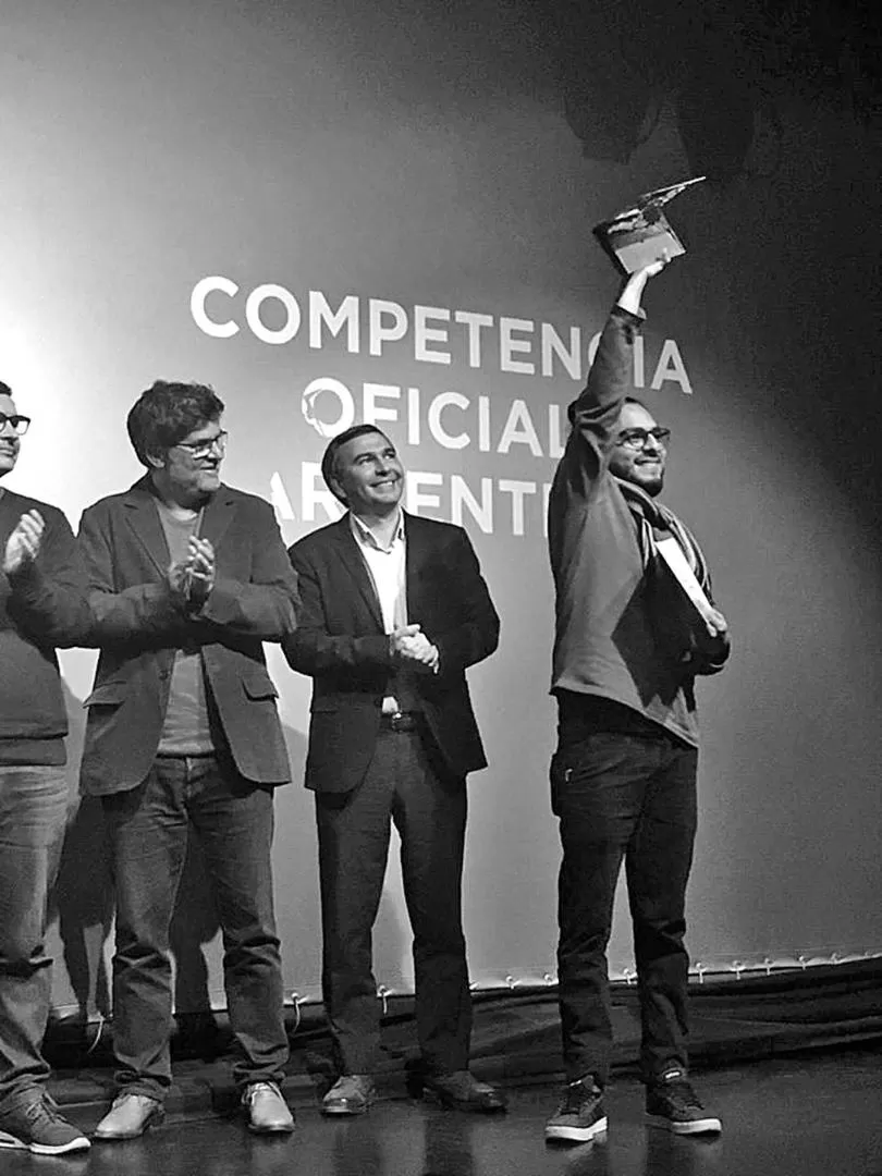 PREMIO EN ALTO. Lucas García levanta la estatuilla el viernes a la noche.