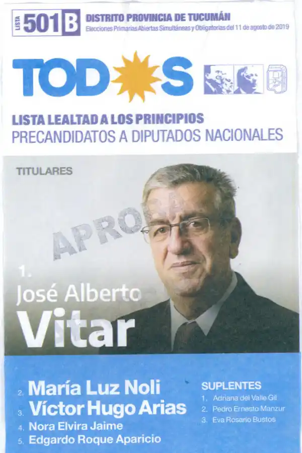 El dirigente peronista tiene una cábala para los días de elecciones. “Hago una caminata tempranito, antes de ir a votar, por el parque 9 de Julio, para relajarme y esperar lo que será el resto de la jornada”, relata José Vitar, quien busca regresar a la Cámara Baja y es secundado por la joven kirchnerista María Luz Noli. El funcionario del Gobierno provincial participará de la interna del Frente de Todos, impulsando la fórmula presidencial Alberto Fernández-Cristina Fernández de Kirchner. Vitar, cabeza de la lista “Lealtad a los Principios”, votará en San Miguel de Tucumán, en la Escuela de Comercio, que está ubicada en avenida Sarmiento 387.