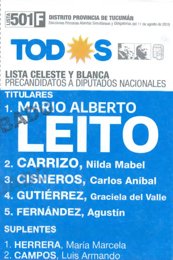 El presidente del Club Atlético Tucumán cuenta que sí tiene algunas cábalas para el fútbol, pero no para la política. De todas maneras, hay algo que Mario Leito tiene pensado hacer hoy. “En el almuerzo me daré unos minutos para compartir con mi familia”, destacó el dirigente “decano”. Leito, seguido por la ex diputada nacional kirchnerista Mabel Carrizo, encabeza la lista “oficial” de la Casa de Gobierno, en apoyo a la fórmula presidencial del Frente de Todos, Alberto Fernández-Cristina Fernández de Kirchner. Su lugar de votación es en la escuela José Mármol, ubicada en calle Virgen de la Merced al 500.