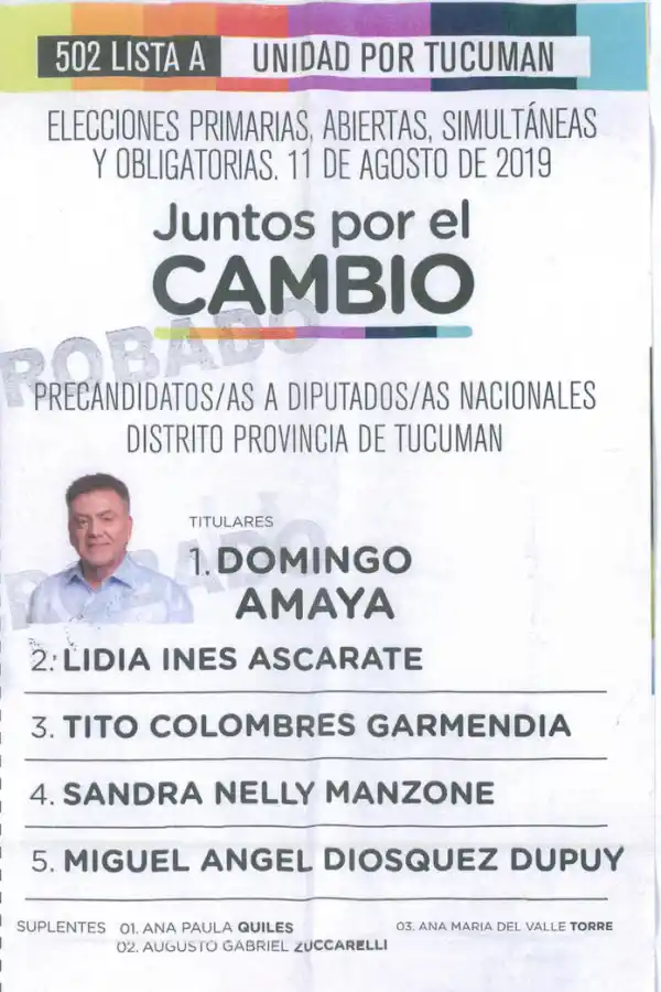 “Me reúno a desayunar con un grupo de amigos, que luego me acompañan a votar. No soy ‘cabulero’, sí soy una persona de fe y tengo mi creencia religiosa”, destacó el subsecretario de Interior de la Nación. Domingo Amaya compite en la interna de Juntos por el Cambio, la alianza que apoya la reelección del presidente, Mauricio Macri, junto al peronista disidente Miguel Ángel Pichetto. Lo secunda la precandidata Lidia Inés Ascárate, una dirigente de la Unión Cívica Radical afín al diputado José Cano. El ex intendente de San Miguel de Tucumán lugar asignado su votación en la escuela Bartolomé Mitre, ubicada en calle Santiago 595 de la Capital.