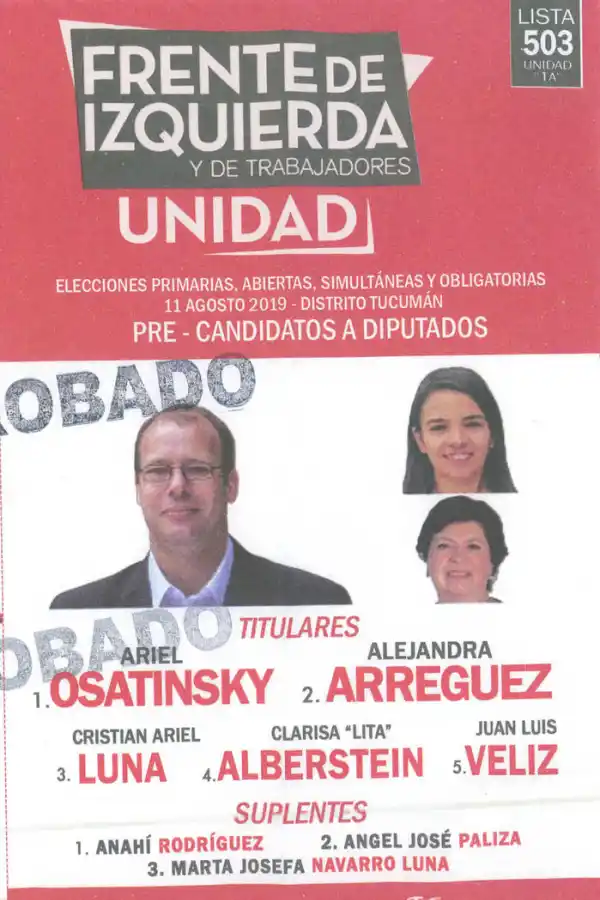 “No creo mucho en esas cosas, la verdad que no tengo cábalas. En general, el día de los comicios pasa por estar desde temprano recibiendo la información de nuestros fiscales para saber cómo empezó la jornada. Al ser una fuerza en desventaja en cuanto a recursos, bregamos porque nuestros votos estén disponibles para los electores. Sí tenemos una costumbre, que es reunirnos a las 18 en la sede del partido para esperar los datos”, detalló Ariel Osatinsky, que es secundado por Alejandra Arreguez. El dirigente del FIT-Unidad, que apoya a la fórmula Nicolás del Caño-Romina del Plá, votará en la Escuela de Comercio, en avenida Sarmiento 387.