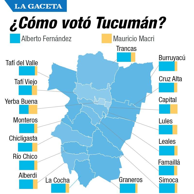 Según los datos del escrutinio provisorio, la fórmula presidencial de Alberto Fernández-Cristina Fernández ganó en los 17 departamentos de la provincia; es decir tanto en capital como en el interior.