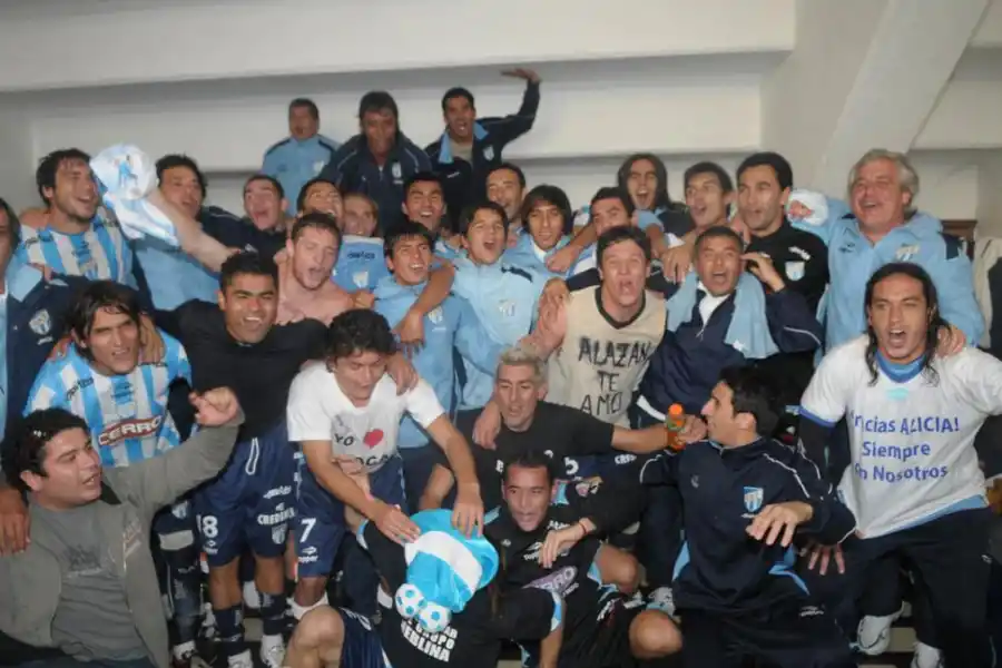 UN GRAN RECUERDO. El “Chulo” Rivoira, junto a sus dirigidos y auxiliares, festejando en el vestuario de Talleres en Córdoba el ascenso a Primera división de Atlético. la gaceta / FOTO de FRANCO VERA (archivo)
