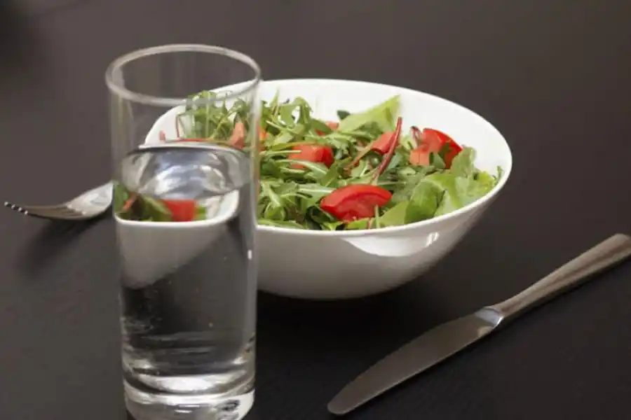 Antes, durante o después de las comidas, el agua no aporta calorías. En todo caso, dicen expertos, beberla justo antes de comer puede llevar a comer menos, porque ocupa lugar en el estómago. Tampoco produce retención de líquidos.