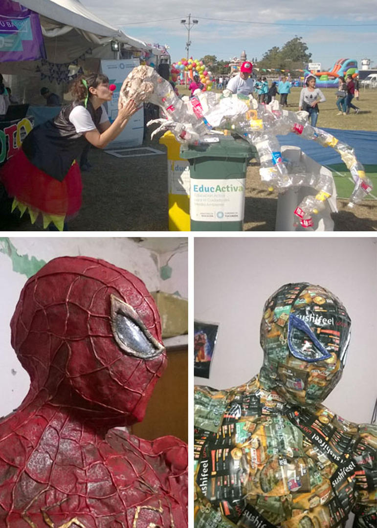 Su contacto con el reciclaje fue casual, admite. “Vi que tirábamos muchas cosas que podían servir para hacerle juguetes a mis hijos. Así empecé. Después hacía personajes para que ellos los obsequiaran en cumpleaños. Todos quedaban fascinados”, cuenta.